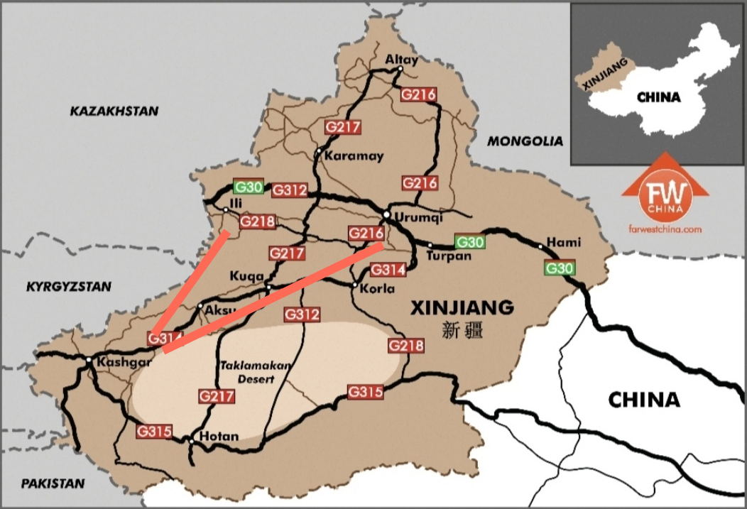 Xinjiang ist etwa dreimal so groß wie Frankreich; es nimmt über 17% der Fläche von ganz China ein. Es grenzt an die Äußere Mongolei, Russland, Kasachstan, Kirgisistan, Tadschikistan, Afghanistan und Pakistan. Es ist also “Grenzland", was auch der chinesische Begriff für die Region: Xinjiang = “neue Grenze“ reflektiert. Große Teile sind Wüste oder unwirtliche Hochgebirge; der zweithöchste Gipfel der Welt, der K2, liegt in Xinjiang. Das Gebiet ist dünn besiedelt mit nur 15 Einwohnern pro qkm. Zum Vergleich: In der Provinz Shandong an Chinas Ostküste leben 646 Menschen pro qkm. 2020 hatte Xinjiang knapp 26 Mio. Einwohner, davon 45% Uiguren, 40% Han-Chinesen, außerdem verschiedene andere Ethnien wie Hui, Kasachen, Kirgisen, Mongolen, Tadschiken, Usbeken, Russen und Tibeter.