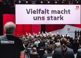 Für Demokratie und demokratischen Zusammenhalt stehe sie als neue Vorsitzende, für Frieden und gegen rechts. Das scheint auch unter den Delegierten unstrittig zu sein. Davon zeugte eine Aktion, bei der Schilder mit der Aufschrift »Refugees welcome!« hochgehalten wurden, womit die Delegierten auf die Rede von Bundeskanzler Scholz am Dienstag reagierten, der seinen Vorstoß, mehr Abschiebungen durchsetzen zu wollen, als Realismus verkaufte.