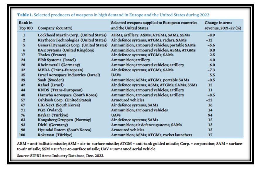 [1] The SIPRI Top 100 Arms-producing and Military Services Companies, 2022