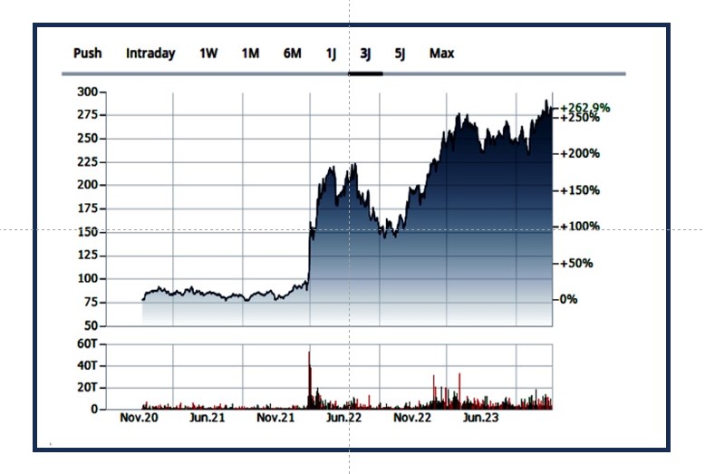 Aktienkurs 3 Jahre, 8. Dezember 2023