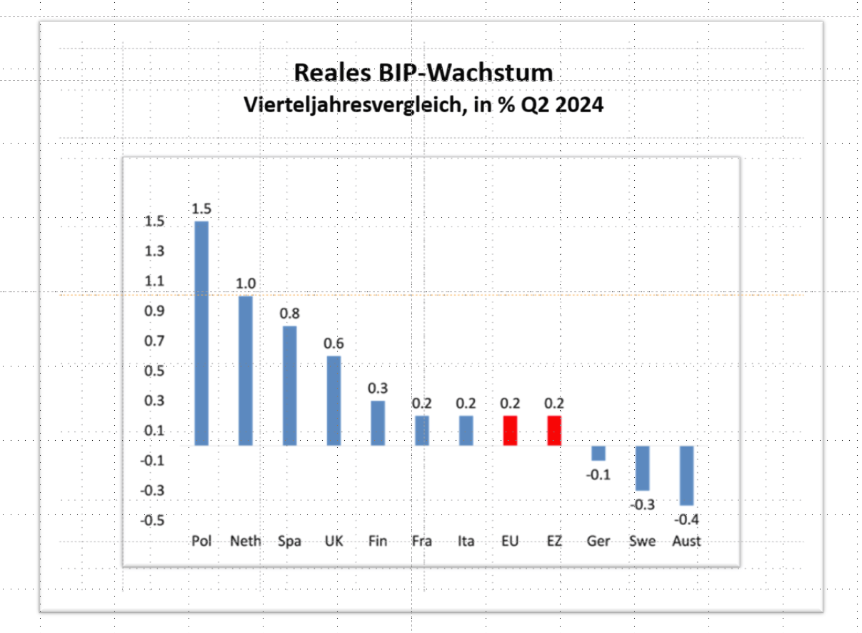 Kaum eine EU-Wirtschaft wächst um mehr als 1 % pro Jahr, und der Durchschnitt der EU/EZ liegt bei gerade einmal +0,2 %.