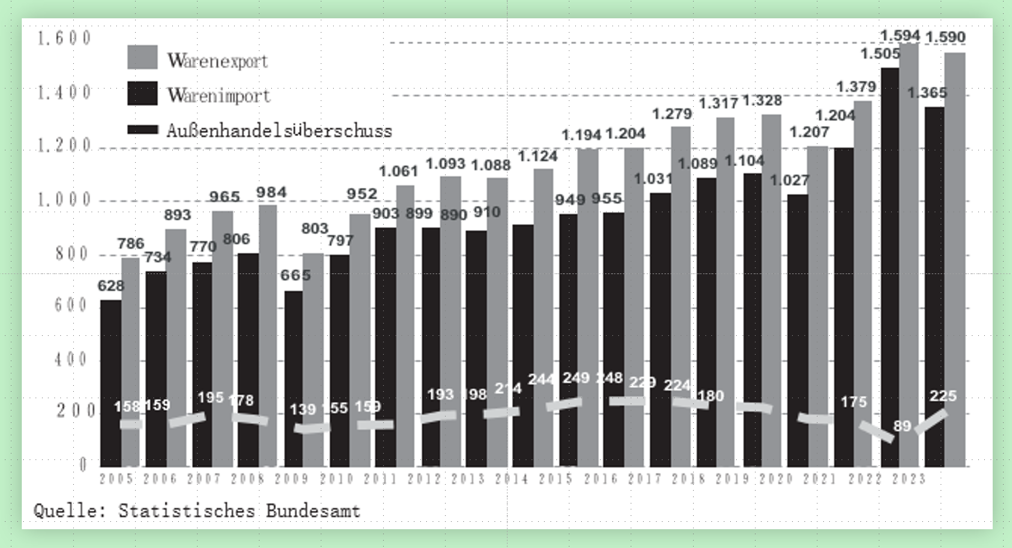Die deutsche Ökonomie ist gekennzeichnet durch intensive internationale Verflechtungen. Ein Merkmal dieser besonderen außenwirtschaftlichen Beziehungen ist seit Jahren der Außenhandelsüberschuss.