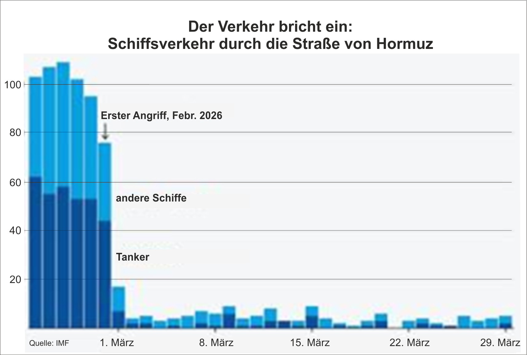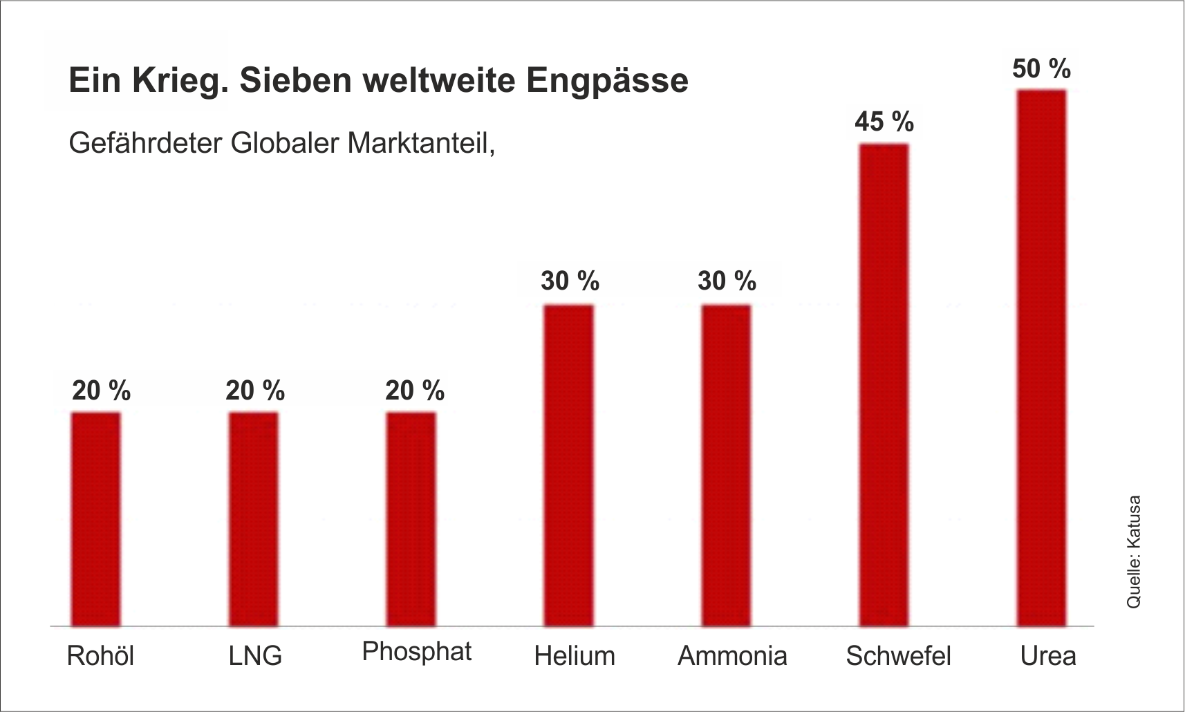 Etwa 70 % der Harnstoffimporte Brasiliens und 40 % der Indiens – die für ihren Agrarsektor unverzichtbar sind – stammen aus der Golfregion und werden über die Straße von Hormus transportiert. Die Golfstaaten importieren den Großteil ihrer Lebensmittel: 75 % ihres Reises sowie mehr als 90 % ihres Maises, ihrer Sojabohnen und ihres Pflanzenöls werden über die Straße von Hormus transportiert. Hinzu kommt, dass Länder wie Bangladesch, Indien und Pakistan von dem unvermeidlichen Rückgang der Überweisungen von Millionen ihrer Bürger, die in den Golfstaaten arbeiten, getroffen werden, da der Krieg die regionale Wirtschaft belastet.