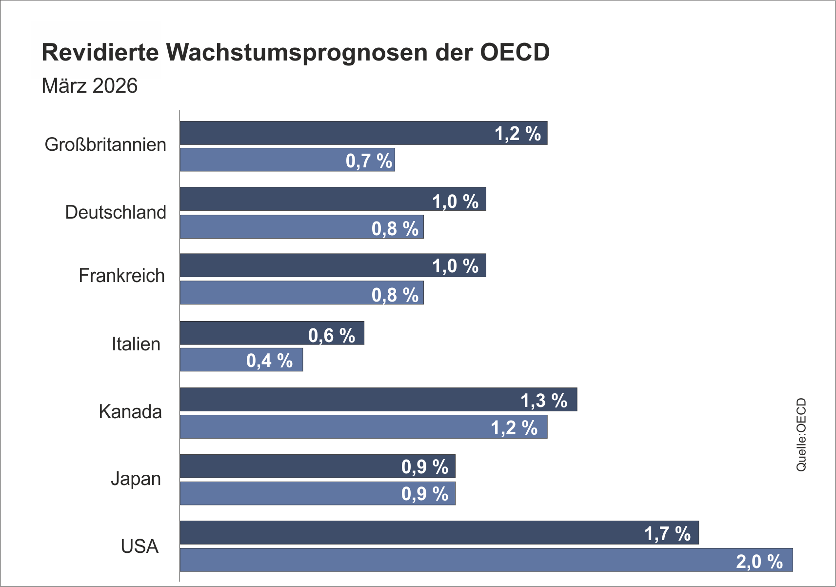 Der jüngste Wirtschaftsausblick der OECD hat die Prognosen für das reale BIP-Wachstum in den großen Volkswirtschaften in diesem Jahr aufgrund des Krieges der USA und Israels gegen den Iran bereits nach unten korrigiert.